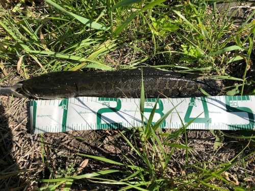 何か所目かのポイントで観察してみると、雷魚が浮いています。